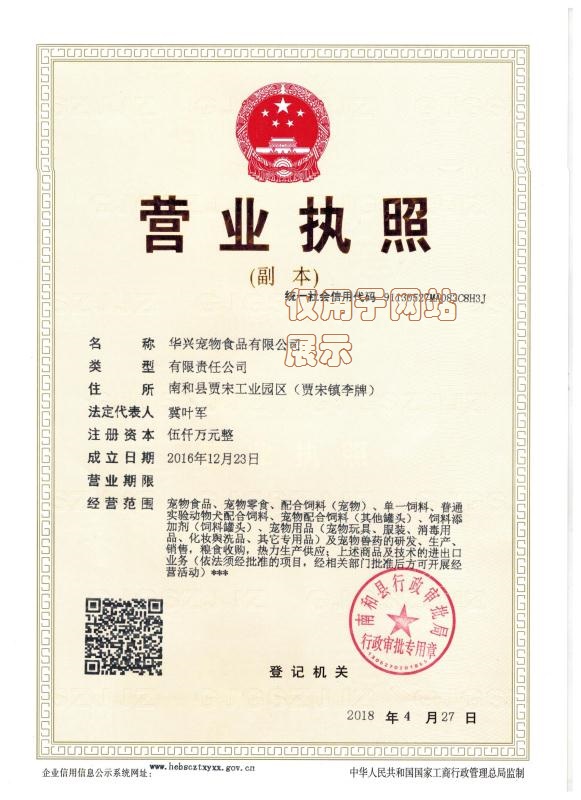 華興公司營業執照和生產許可證