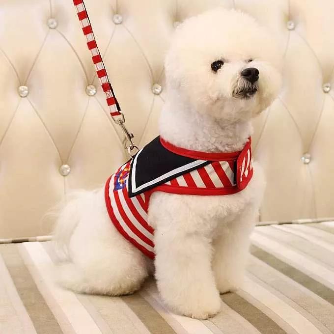 但有些主人考慮到安全性能,所以給狗狗買胸背帶。然而就算是胸背帶,一字型的也會傷害狗狗。盡量選擇胸前是Y字型的胸背帶,可以減少對狗狗脖子的壓迫感。但胸背帶也會助長狗狗爆沖的習慣,無法正確將方向信息傳遞給狗狗。如果你不想讓狗狗爆沖,也可以選擇前扣型的胸背帶,這種胸背帶牽引繩扣子在狗狗胸前。反正如果你給狗狗買胸背帶,謹記這3點:盡量選擇前胸是Y字型的胸背帶、胸背帶不能卡到狗狗的腋下、不影響肩胛骨。